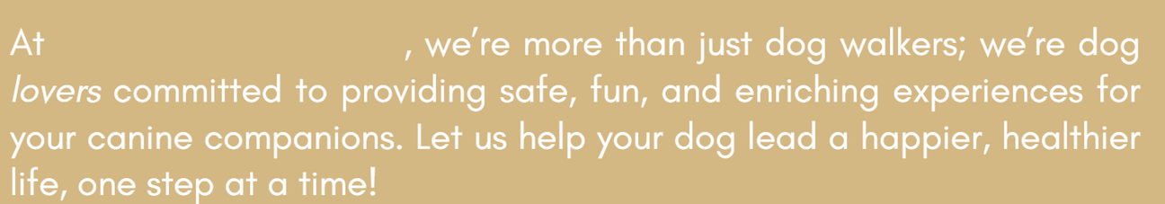 Happiness is just as important to us. We understand that a happy dog is a healthy dog, so we tailor each walk to match your dog's individual needs, energy level, and personality. Whether it's a leisurely stroll in the park, a brisk walk around the neighborhood, or a playful romp in a safe, open space, we guarantee wagging tails and joyful barks.